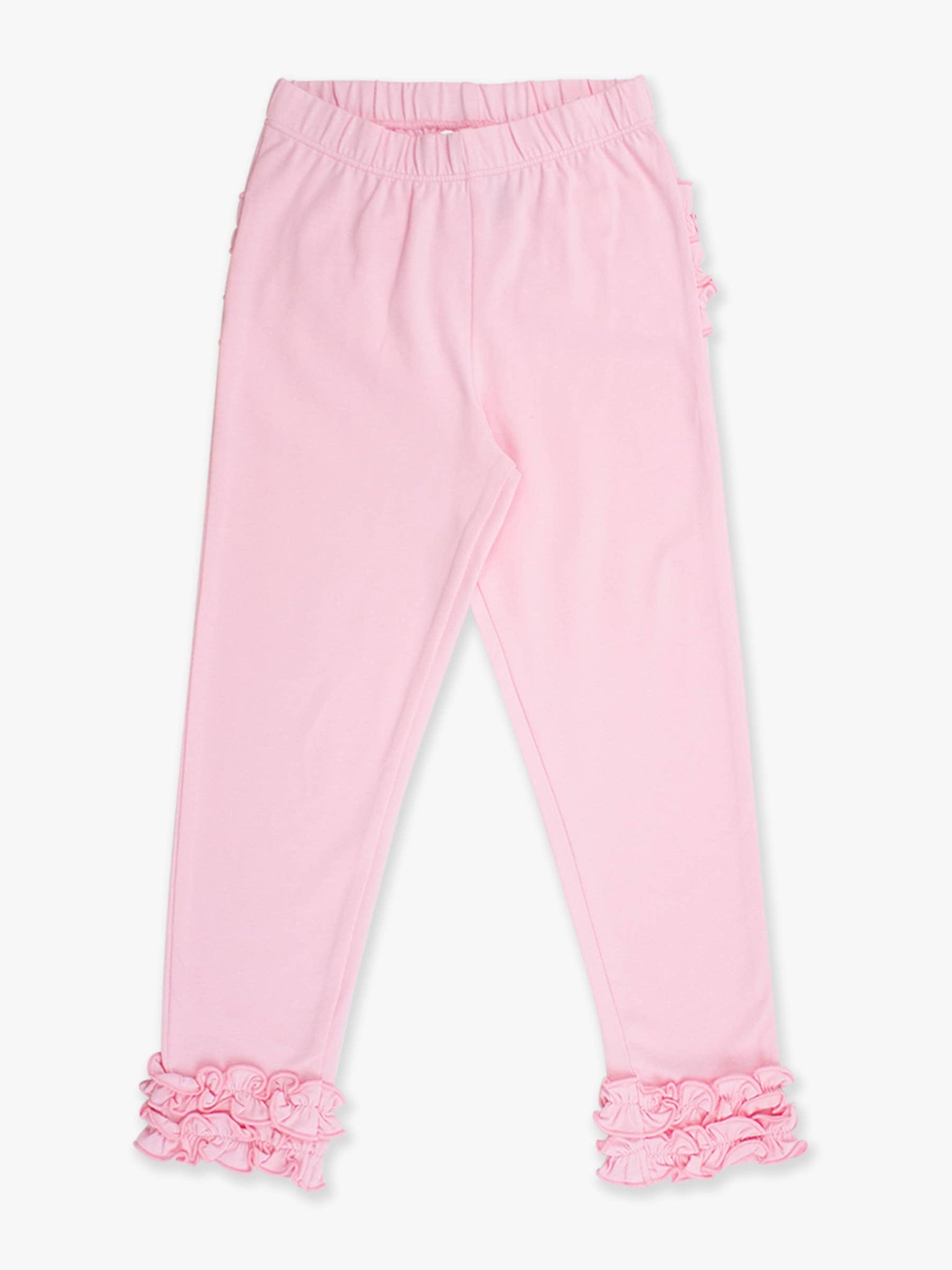These classic ruffle leggings are back! With a sweet double ruffle cuff at the ankle and signature rear ruffles, these sweet and sassy leggings are ready for everyday wear. Whether getting dressed up for family photos or heading to the park for a playdate, these ruffle leggings are versatile and adorable.